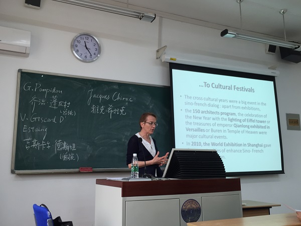 第二部分为讲座的核心内容,着重讲述了20世纪五、六十年代中法文化交流与政治交往。新中国成立之初,尽管法国政府尚未承认社会主义政权,但派遣代表团来华访问交流,并因此推出了一些积极描述新中国的作品,如西蒙娜•德•波伏娃撰写的《长征》(La longue marche, 1957)。此外,马克•吕布(Marc Riboud)与亨利•卡蒂埃-布列松(Henri Cartier-Bresson)等人的摄影作品见证了上海的共产主义革命,提供了关于中国的难以磨灭的影像。与此同时,少数法国学生来华留学,其中包括日后成为著名汉学家的玛利亚娜•巴斯蒂(Marianne Bastid)、米歇尔•卡蒂埃(Michel Cartier)和雅克•班巴诺(Jacques Pimpaneau)。 在第三部分中,柯蓉教授从中法文化关系谈到了当下的高科技合作。她认为中法两国的对话在很大程度上基于文化关系,而文化服务于外交,同时也对经济、政治产生影响。进入21世纪以来,中国在新的世界秩序中扮演着越来越重要的角色,在此背景下,法国试图巩固与中国的特殊关系,2003-2005年的“中法文化年”和2011-2013年的“中法语言年”系列活动即体现了这一努力。高科技领域的合作也是当下中法关系的重要基础。比如,2007年法国国立民航大学与中国民航大学(天津)合作创办了中欧航空工程师学院;2010年中山大学与法国合作创立了中法核工程与技术学院。最后,教授指出中法两国长期保持文化上的密切交流,二者之间的合作是深入的、可持续的。尽管当中国企业主购买法国公司时,在法国经济领域再度出现中国威胁论的神话,但是相信通过持续的深入对话可以化解偏见、加强合作。