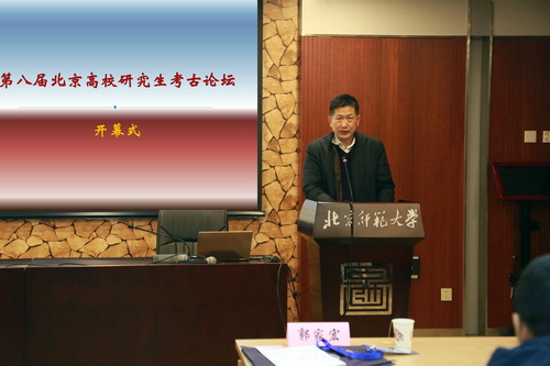 11月17日上午8:30,论坛在北京师范大学图书馆第一会议室开幕,开幕式由新爱体育(官网)官方网站杜水生教授主持。开幕式上,新爱体育(官网)官方网站党委书记郭家宏教授莅临讲话,他回顾了北京师范大学考古学专业自2001年建立以来辉煌的发展历程,指出新爱体育(官网)官方网站强大的史学基础是考古学发展的坚强后盾,更进一步表明今后学院将全力支持考古学专业学科建设的意愿。中国人民大学历史学院魏坚教授对 “北京高校研究生考古论坛”的举办历程进行了回顾,表示论坛的开办为有志考古事业的研究生提供了学习、交流平台,为开拓学生的学术视野,增进学术交流做出了积极贡献。