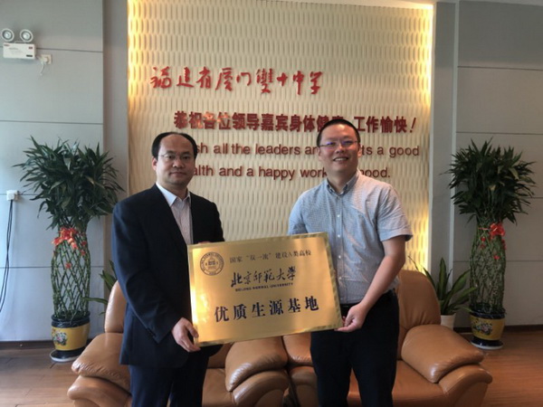 为了进一步提升招生宣传工作的成效,相应学校的号召,4月18日—23日,历史学院教学院长姜海军老师奔赴福州一中、厦门双十中学、厦门一中等几所福建省重点中学,与各中学的书记、校长、主任等相关主管领导进行洽谈,期待彼此进一步加强合作与交流。随后,姜老师代表北京师范大学与他们建立了三处“优质生源基地”,并举行了挂牌、签约仪式。期间,姜海军老师、李凯老师还为这些学校的学生及家长作了招生、宣传及相关学术讲座。
