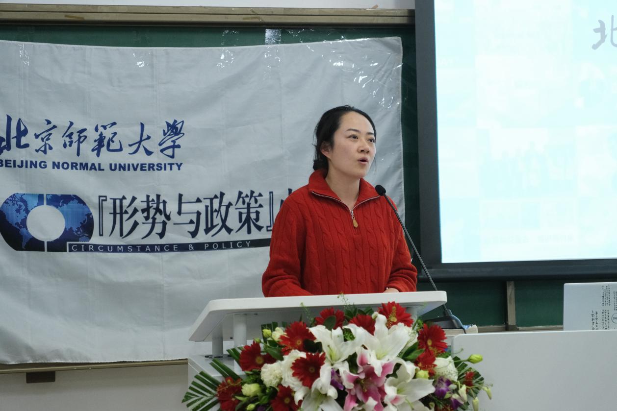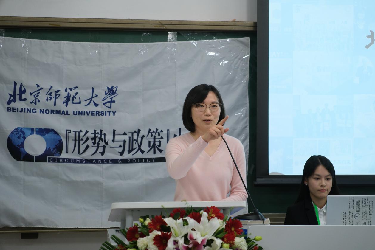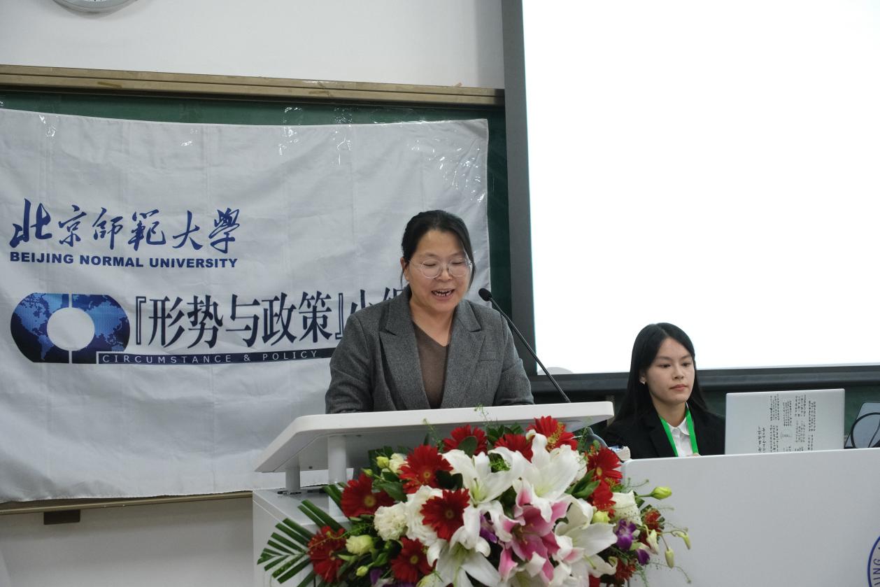 各组展示结束后,牛小游老师和徐畅老师分别作了总结发言。牛老师对“形势与政策”小组近二十年来一以贯之打造高标准的精品活动、助力学生思想政治教育与人才培养的实践表示高度赞赏,认为本次论坛反映出同学们严谨专业的选题设计和清晰透彻的表达逻辑,充分展现了师大学子的视野与风采。她勉励大家始终站在时代背景下思考,致力于完善学习研究的深度和精度,并希望小组继续统筹好“形势与政策”第一课堂与第二课堂,为北师大学生思政教育再添新彩。