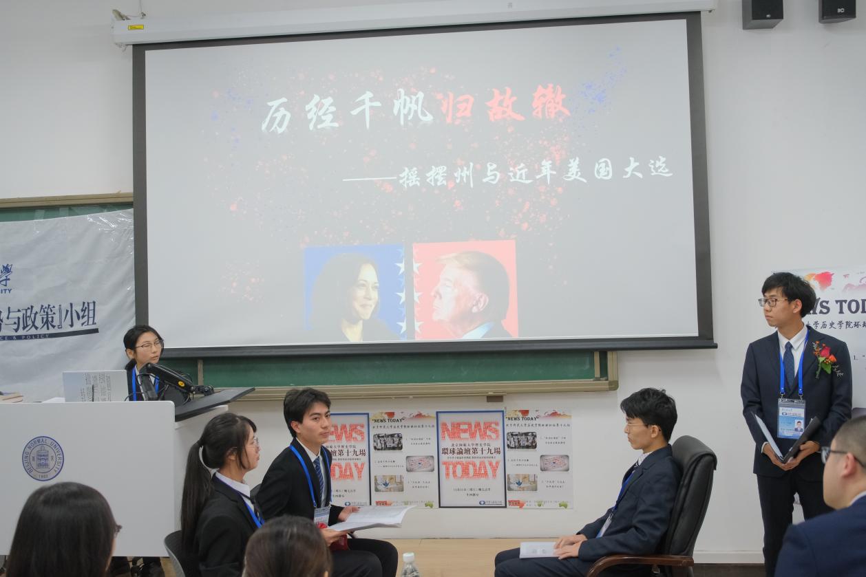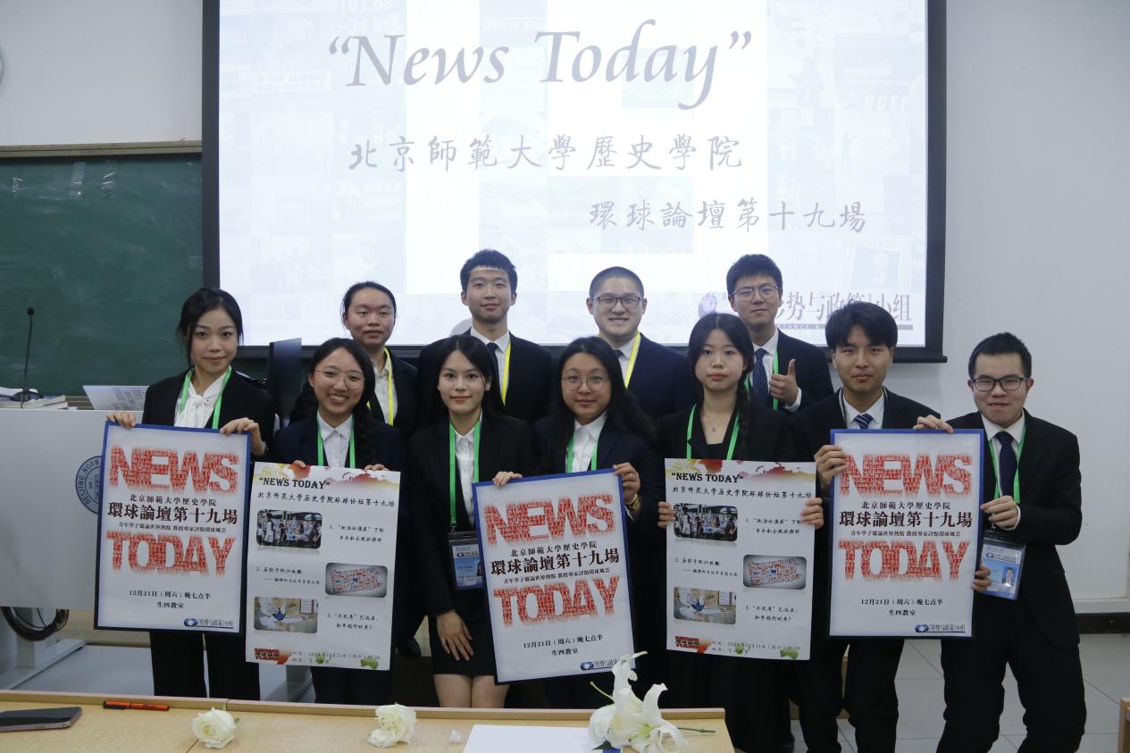 “News Today”新爱体育(官网)官方网站环球论坛是历史学院依托“形势与政策”小组推出的一项特色精品活动,自2006年以来已连续举办十九场。活动中,学生自主选择感兴趣的国内国际时事话题进行分组主题展示,并邀请历史学院的教授学者进行专业点评。环球论坛拓宽了同学们的视野,培养了团队协作能力,也对外展示了北师大学生博古通今、胸怀天下的国际视野,在北师大乃至北京市高校范围内产生了广泛的影响。在论坛上表现出色的同学将有机会以“学生进课堂”的形式为全校本科生授课。十八年来,共有17个年级的同学先后52次登上讲台,受众已达数千人,为北京师范大学学生思想政治教育创新不断发挥积极作用。