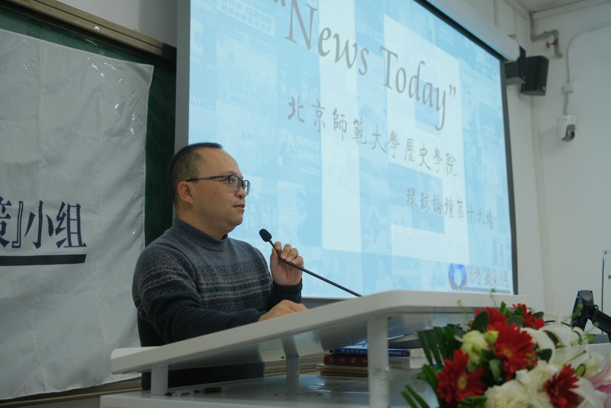2024年12月21日晚,“News Today”新爱体育(官网)官方网站环球论坛第十九场在我校生四教室隆重举行。活动由北京师范大学党委学生工作部、历史学院主办,历史学院“形势与政策”小组承办。校党委学生工作部辅导员发展中心副主任牛小游,历史学院党委副书记赵云慧,历史学院副院长徐畅,中国古代史教研室主任罗新慧,世界近代史教研室贾珺、谷雪妮,史学理论与外国史学史教研室金嵌雯,历史学院团委书记唐静宜,历史学院学生工作办公室刘一璇应邀出席活动。国际关系学院国际问题研讨会原会长、北京大学东南亚协会原会长王胤兆,北京师范大学第二十五届“十佳大学生”获得者刘慕义和历史学院各社团代表等应邀参加。此外,国际关系学院国际问题研讨会、外交学院时事研究会、北京理工大学海峡文化交流协会、中国政法大学国际时政论坛等高校兄弟社团代表也参加了此次活动。论坛由“形势与政策”小组成员张桄玮主持。