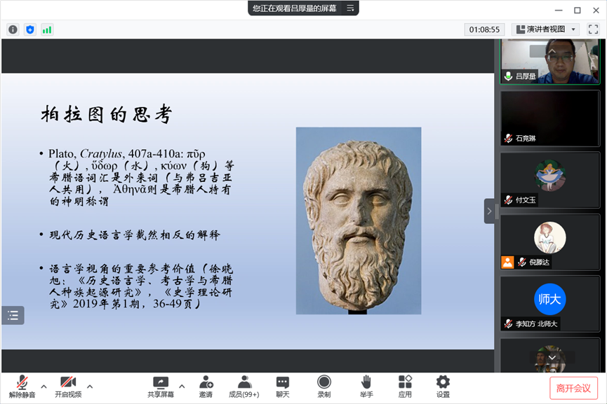 吕老师的讲座引起了线上师生的兴趣与思考。倪滕达老师为本次讲座作了简明扼要的概括总结。同学们也通过提问与吕老师进行学习交流。吕老师认真耐心地解答了同学们的疑问。同学们均受益良多。