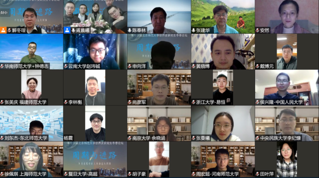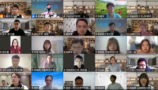 2020年11月21日至22日,第十六届北京师范大学世界史研究生冬季论坛以线上会议形式成功举办。本届论坛主题为“历史进程中的人类命运共同体——周期与进路”,共收到来自北京大学、清华大学、中国人民大学、复旦大学、华东师范大学、南京大学、浙江大学、东北师范大学、西北大学、华南师范大学、北京师范大学等知名高校硕博研究生投稿近百篇,经过学术委员会的严格审阅,共遴选出参会论文45篇。