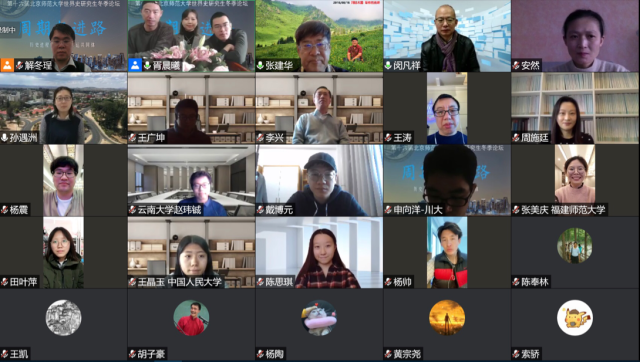 为拓宽学术视野,本届论坛特还安排了三场专家线上讲座,与会同学有幸聆听了首都师范大学施诚教授、清华大学梅雪芹教授、首都师范大学姚百慧教授的专题讲座,题目分别为“生态世界的连接与重塑”、“档案的利用”、“西方传染病疫源地研究中的歧见和偏见”,三位老师的精彩发言受到了同学们的热情关注。