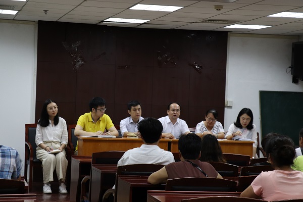 2018年9月2日下午6点,历史学院2018级本科新生家长见面会在主楼600召开。历史学院副院长姜海军老师、专职辅导员李力老师,以及2018级本科班班主任曲柄睿老师、丁雨老师、胥晨曦老师出席了本次会议,分团委书记胡小溪老师主持会议。