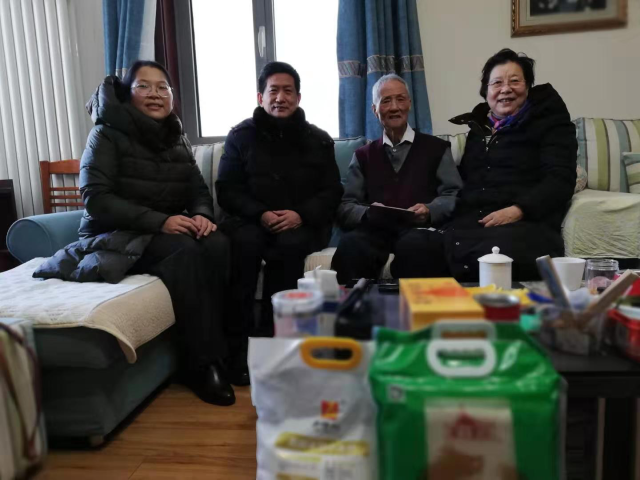 在吴怀祺老师家中,郭家宏一行向他送上了学院专门准备的慰问品,并与吴怀祺老师进行了亲切的谈话。郭家宏一行对老教师的奉献精神表达了由衷的敬意,关切地询问了吴怀祺老师的身体状况,希望老教师保重身体,并祝其新年快乐,身体健康,生活幸福。谈话在轻松愉快的氛围中结束。