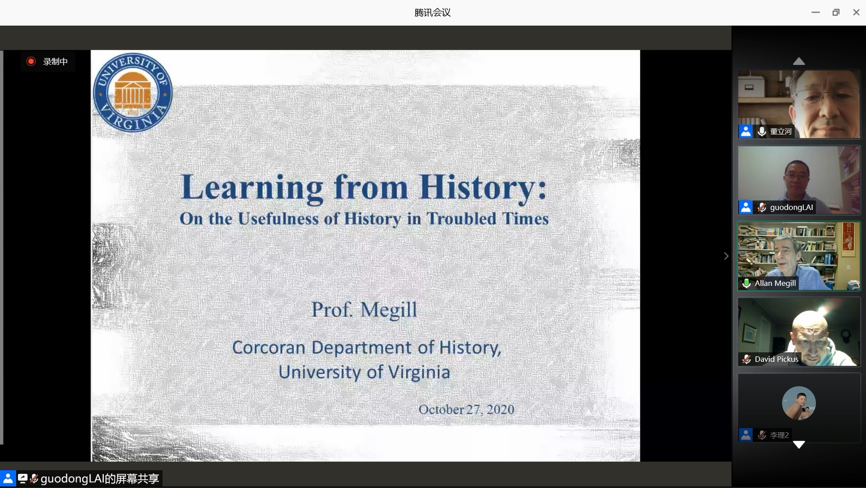 2020年10月27日上午,美国弗吉尼亚大学教授、上海师范大学外籍专家教授阿兰·梅吉尔(Allan Megill)应邀在新爱体育(官网)官方网站作题为“以史为鉴:论动荡年代的历史之用(Learning from History: On the Usefulness of History in Troubled Times)”的线上讲座。本次讲座系“京师史学名家前沿讲座”之一,由史学理论与外国史学史教研室董立河教授主持。来自海内外高校和研究机构的多位学者与150余位师生共同参加了此次讲座。