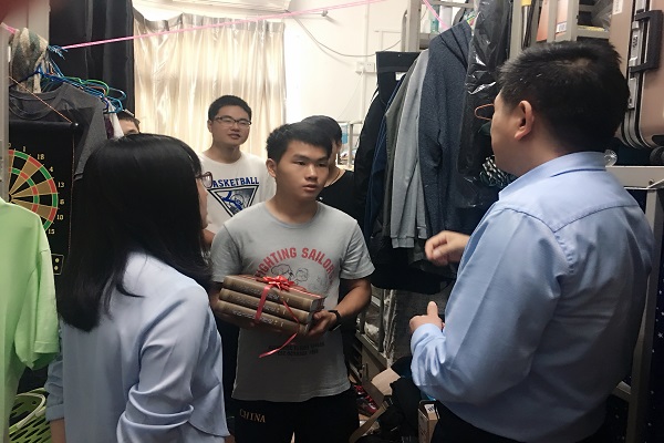 响应国家应征入伍号召,今年我院共有两名本科生顺利入伍,分别是2016级本科生杨宇和2015级本科生张颖。学院分党委对此高度重视,分党委书记郭家宏、分党委副书记王卓凯、2016级本科班班主任倪滕达、2015级本科班班主任江天岳和专职辅导员李力专程到宿舍走访慰问了两名入伍大学生。