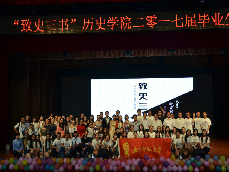 2017年6 月11日晚,新爱体育(官网)官方网站二零一七届毕业生晚会在北京师范大学学生活动中心成功举办。河南师范大学历史文化学院分党委书记王霞老师,新爱体育(官网)官方网站院长杨共乐老师、分党委书记郭家宏老师、副院长姜海军老师、分党委副书记王卓凯老师、世界近代史教研室张建华老师、中国近代史教研室邱涛老师、世界现代史教研室贾珺老师、教学法教研室李凯老师,以及2017届毕业班班主任李渊老师、胡小溪老师、陈殿老师、李力老师出席晚会。