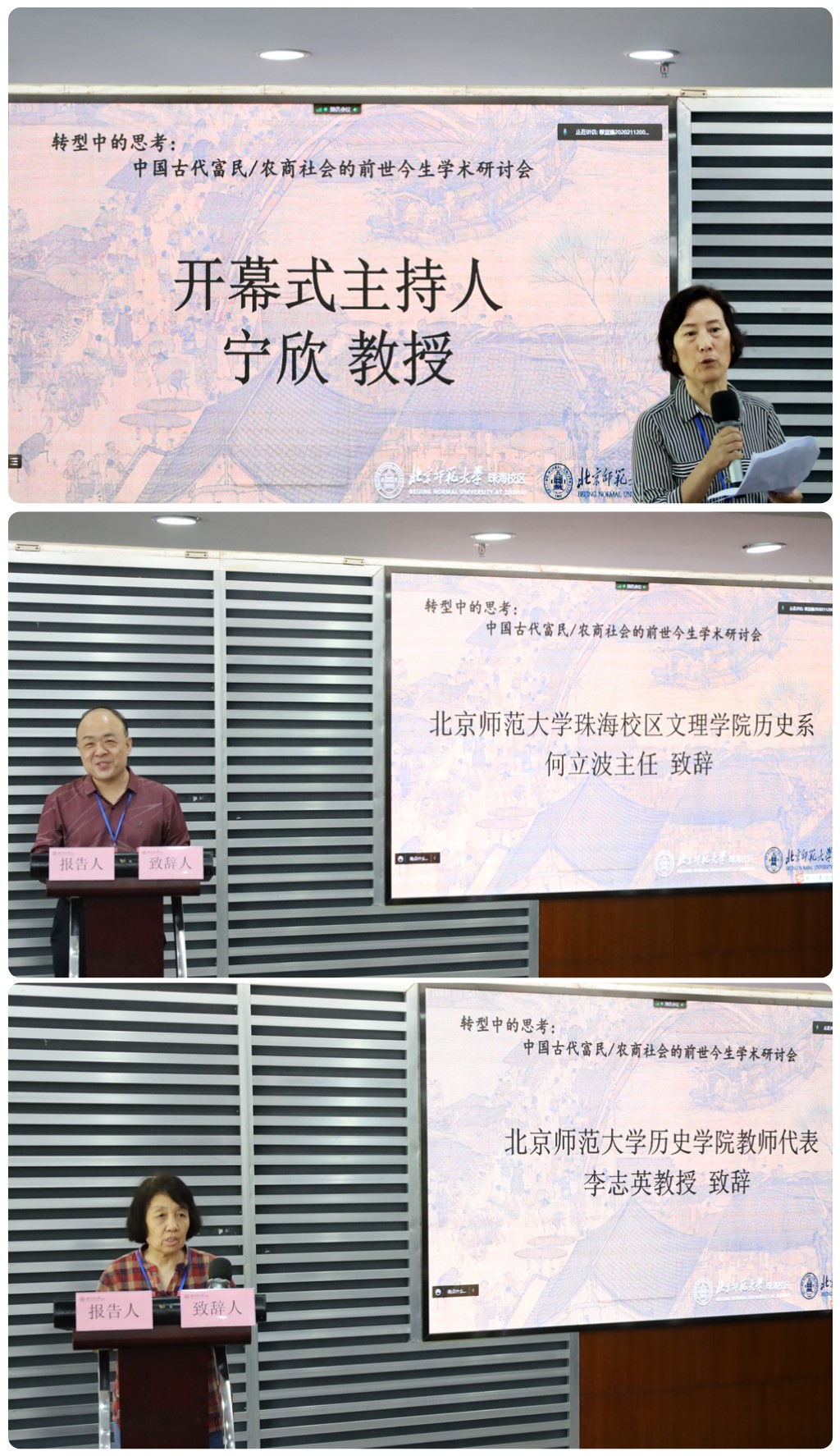 新爱体育(官网)官方网站张皓院长,通过远程视频的方式对本次会议表达祝贺和期愿,对本次会议的顺利召开及研究主题给予高度评价。珠海校区文理学院历史研究室何立波主任介绍了目前北师大珠海校区的学科建设,预祝会议圆满成功。北师大历史学院教师代表李志英教授致辞,并从绅商的视角出发,认为绅商对于推进中国古代富民农商学术的发展有着重要的作用。