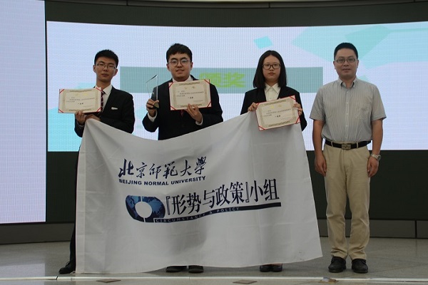 2017年5月14日下午,第六届京津高校海峡两岸知识竞赛在清华大学罗姆楼多功能厅举行。由我院2016级本科生宁轩、洪思音,以及我校励耘学院2013级本科生叶骏组成的北京师范大学代表队受邀参赛,获得第一名的优异成绩。我院“形势与政策”小组承担了本次比赛的校内选拔和培训工作。