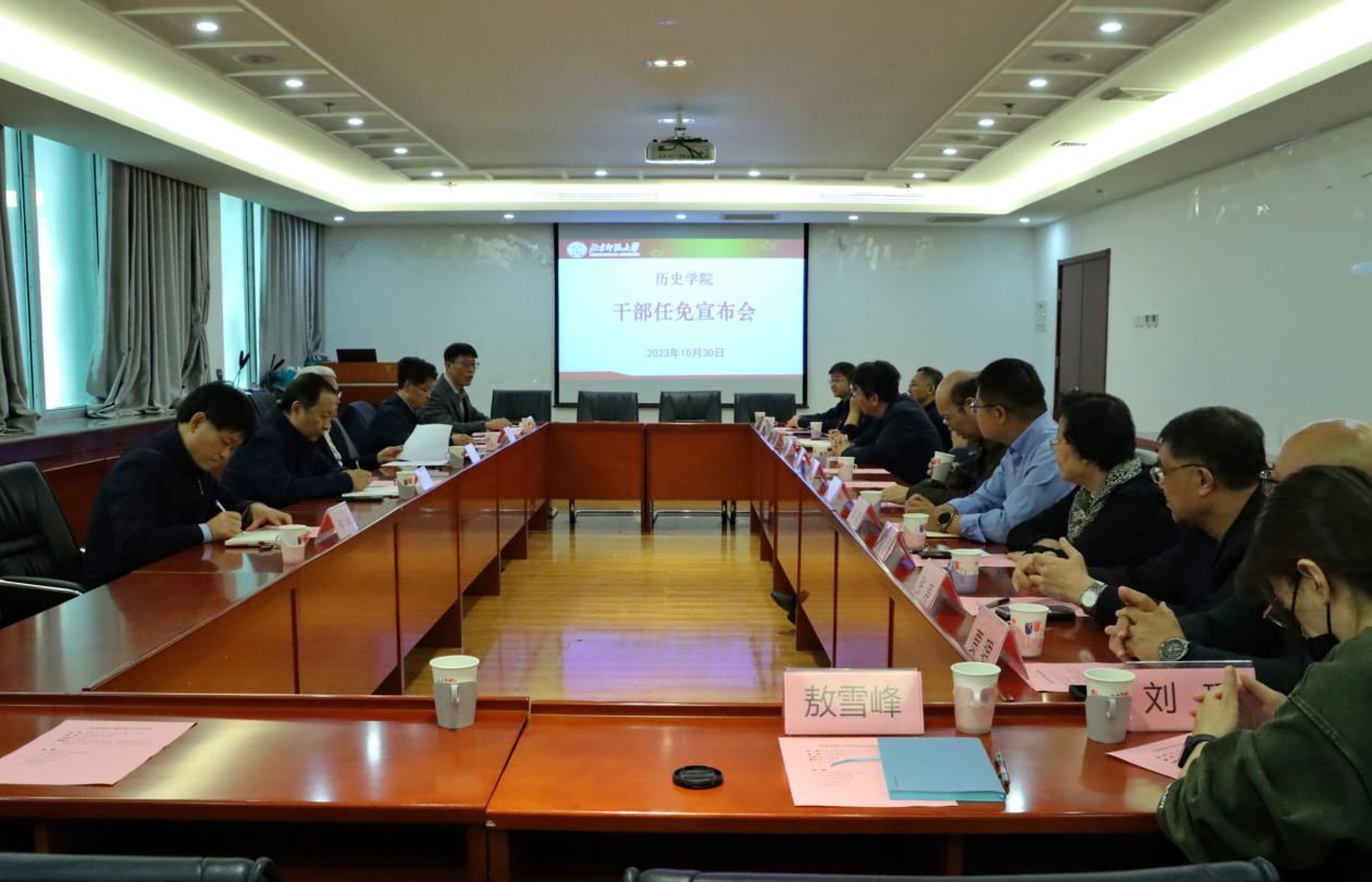10月30日下午,历史学院干部任免宣布会在主楼600召开。党委副书记、校长马骏,党委常委、党委组织部部长张雁云,历史学院党政领导班子成员、党委委员、教工党支部书记及支委、党委组织部相关负责人出席会议。会议由张雁云主持。
