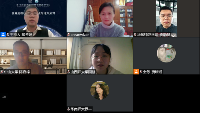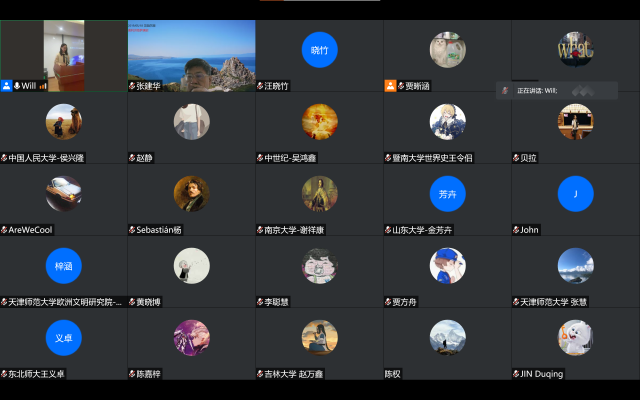 在接下来的主题报告环节中,共有5位同学先后在线上论坛做了主题发言。第一位是天津师范大学的冯占锋同学,发言论文主题为《英国济贫法时代乡村堂区的“户籍”管理》,中山大学的李星然同学进行评议,北京师范大学胡莉老师做总结点评;第二位是中国社会科学院大学的贾方舟同学,发言论文主题是《制造国王:查理五世加冕仪式(1364)的仪式叙事与历史书写》,华中师范大学的马继红同学进行评议,北京师范大学(珠海校区)的黄广连老师做总结点评;第三位是华东师范大学的潘慧雅同学,发言论文主题为《马穆鲁克统治时期开罗的大型公共建筑与社会》,西北大学的任晓宇同学进行评议,北京师范大学的王海利老师做总结点评;第四位是北京师范大学的殷亲亲同学,发言论文主题为《阿姆托尔格公司与美苏早期贸易关系(1924-1933)》,吉林大学的赵万鑫同学进行评议,北京师范大学的张建华老师做总结点评;第五位是中山大学的李星然同学,发言论文主题为《试论英国在尼泊尔的角色重构——以邓宁使团为核心的考察》,天津师范大学的冯占锋同学进行评议,北京师范大学的李兴老师做总结点评。