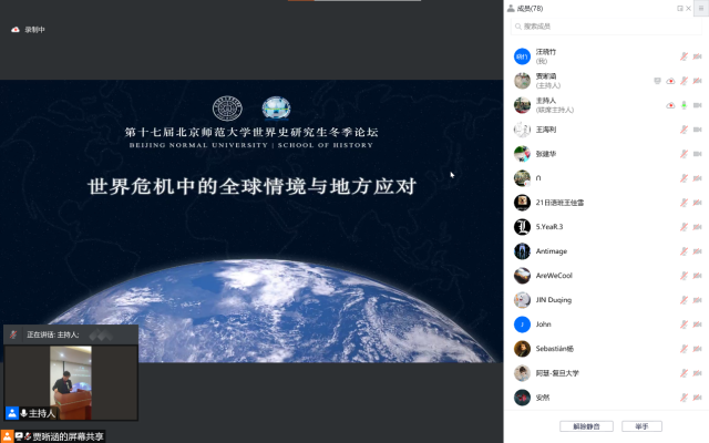 2021年11月27日至28日,第十七届北京师范大学世界史研究生冬季论坛以线上会议形式成功举办。本届论坛主题为“世界危机中的全球情境与地方应对”,共收到来自北京大学、清华大学、中国人民大学、首都师范大学、中国社会科学院大学、东北师范大学、吉林大学、南开大学、天津师范大学、兰州大学、山西师范大学、西北大学、山东大学、山东师范大学、南京大学、南京师范大学、复旦大学、华东师范大学、上海大学、上海师范大学、安徽师范大学、华中师范大学、湖南师范大学、四川大学、西南大学、暨南大学、中山大学、福建师范大学、华南师范大学、厦门大学等知名高校硕博研究生投稿143篇,经过学术委员会的严格审阅,共遴选出参会论文103篇。