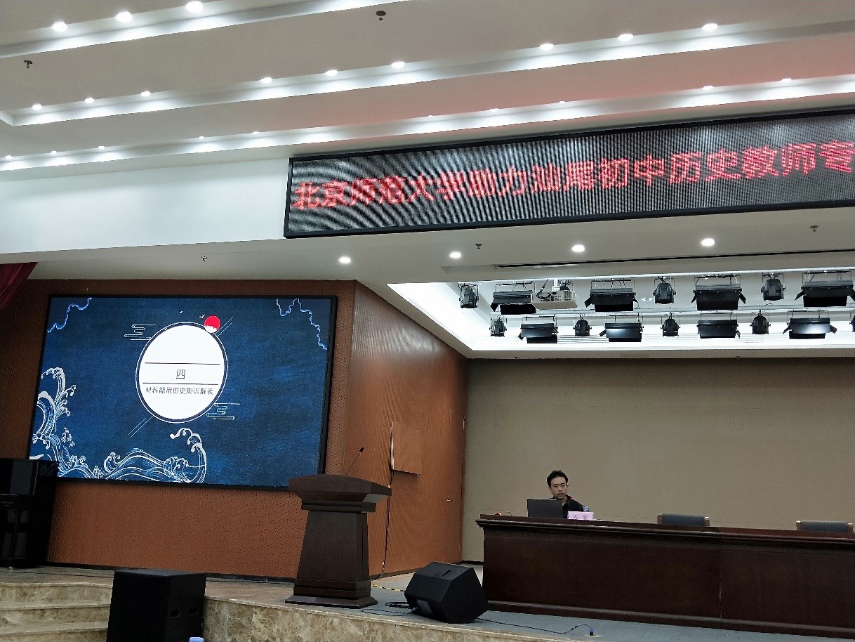 30日上午,郑林教授和李凯老师与汕尾市教研员一起组织了历史学科第二届京汕杯决赛,并对38位选手的教学设计展示做了点评。下午,又组织了6位骨干教师的说课展示。郑林教授从历史教学理念、教学方法、内容选取等角度进行了指导,提出改进意见。李凯副教授则从历史教学主线和教学重难点等方面做了指导,帮助老师们进一步改进教学设计。