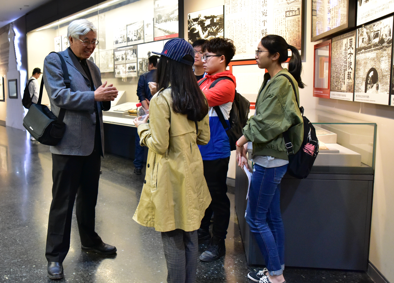 在参观过程中,马卫东老师还为前来参观的学生答疑解惑,分享自己对于抗日战争的见解。通过提问学生的频频点头示意和激动兴奋的表情,可见马老师的专业解说使他们受益颇丰。