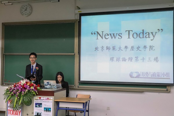 “News Today”新爱体育(官网)官方网站环球论坛是历史学院依托“形势与政策”小组推出的一项特色精品活动。从2006年至今已成功举办十三场。在活动中表现出色的同学,将有机会代表小组走上“形势与政策”课程的讲台。环球论坛旨在促进当下时事关注与历史专业学习的融通,培养学生主动学习、深入思考、清晰表达、团结协作的能力,展现了青年学子胸怀天下的良好风貌。