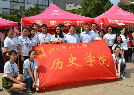 9月3日是我校2017级新生报到日。历史学院院长杨共乐老师、分党委书记郭家宏老师、副院长李帆老师、副院长姜海军老师、分党委副书记王卓凯老师,以及2017级本科班班主任陈殿老师、李力老师,2017级硕士班班主任王广坤老师、胡小溪老师,2017级博士班班主任顾晓伟老师与同学们一道在京师广场喜迎新生。