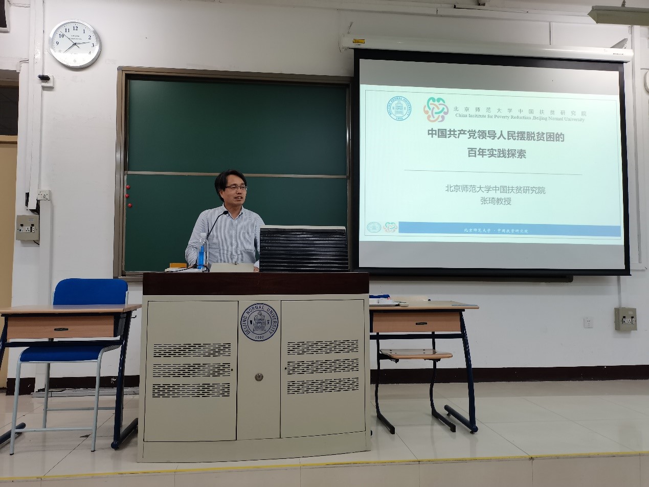 2021年5月27日下午,历史学院二级党校举办“中国共产党领导人民摆脱贫困的百年实践”党史专题讲座。本次讲座由历史学院党委书记耿向东主持,经济与资源管理研究院党总支书记、教授张琦主讲。历史学院教师、学生党员及入党积极分子参加了此次讲座。