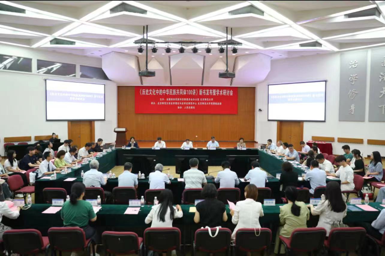 7月2日,由全国政协民族和宗教委员会办公室、北京师范大学主办,新爱体育(官网)官方网站史学理论与史学史研究中心、北京师范大学党委统战部承办,人民出版社协办的《历史文化中的中华民族共同体100讲》新书发布暨学术研讨会在北京举行。